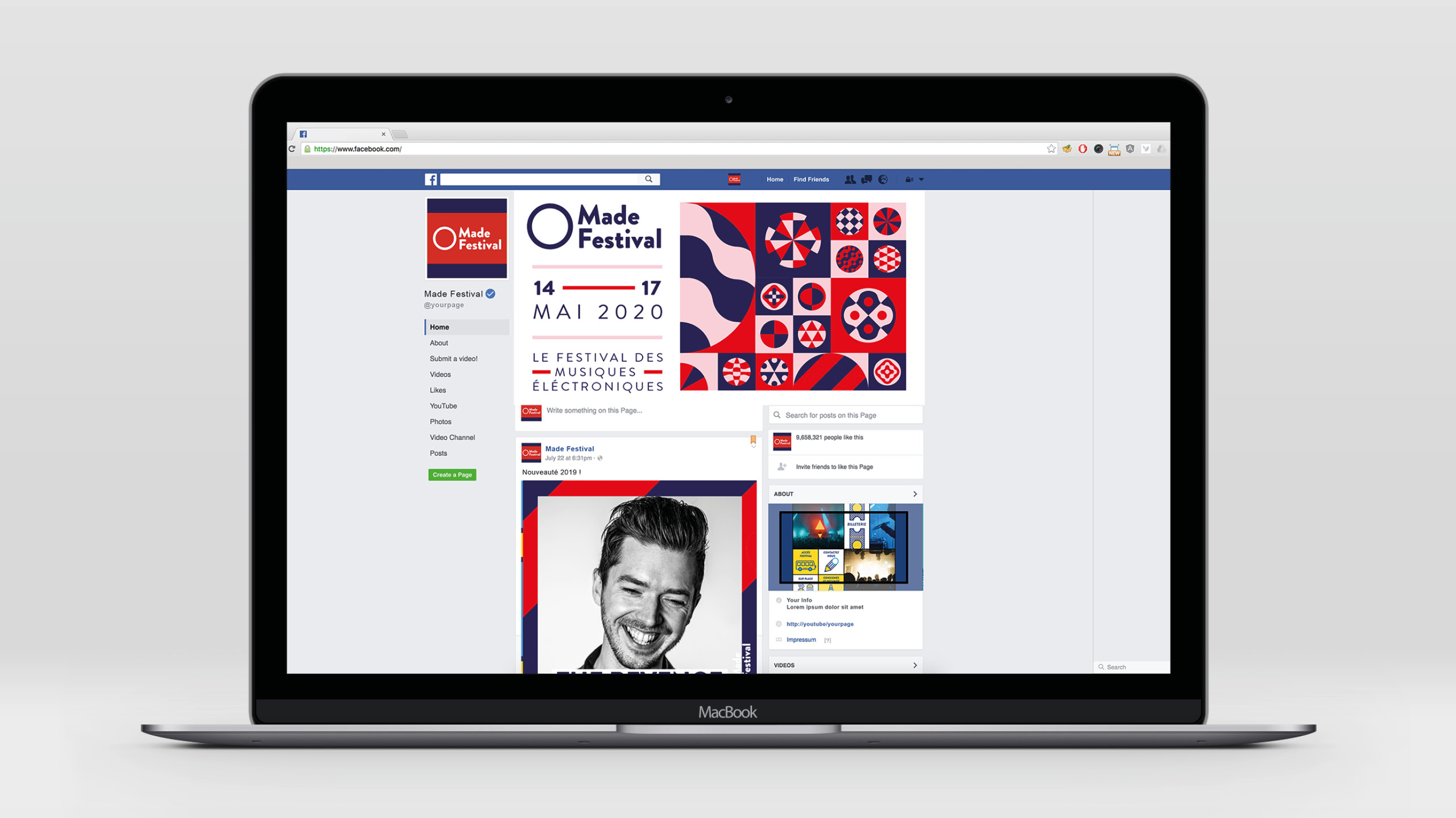 Direction artistique pour la communication de l’édition 2020. Réalisation de l’univers visuel et des affiches officielles Made Festival 2020. Édition annulé par le Covid 19.